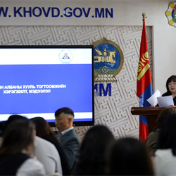 Admin 11/25/2025 Photo, Design 5 ХОВД АЙМАГ:2026 оны төсвийн төслийг өргөн барилаа Монгол Улсын төсвийн тухай хуульд аймаг, нийслэлийн Засаг дарга 11 дүгээр сарын 25-ны дотор аймгийн төсвийн төслийг тухайн шатны иргэдийн Төлөөлөгчдийн Хурал болон Зөвлөлд өргөн мэдүүлэхээр заасан байдаг. Үүний дагуу аймгийн Засаг дарга М.Амарсанаа: "Аймгийн 2026 оны төсвийн төсөл"-ийг /2025.11.25/ аймгийн ИТХ-ын дарга З.Эрхбаяр, аймгийн ИТХ-ын Зөвлөлд өргөн барилаа. З.Эрхбаяр:Хуулийн хугацаанд багтаж ирэх оны төсвийн төслөө өргөн барьж буй аймгийн Засаг дарга М.Амарсанаа болон ажлын х 11/25/2025