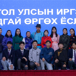 Admin 11/25/2025 Photo, Design 5 Энэ онд Ховд аймгийн хэмжээнд 1840 гаруй хүүхэд 16 нас хүрч байна Жил бүрийн 11 дүгээр сарын 26 буюу Бүгд найрамдах улсаа тунхаглан, анхдугаар Үндсэн хуулиа баталсан түүхт өдрийг тохиолдуулан 16 нас хүрч байгаа хүүхэд, залуусыг оролцуулан "ИРГЭНИЙ АНДГАЙ ӨРГӨХ ЁСЛОЛ" зохион байгуулдаг уламжлалтай. Өнөөдөр /2025.11.25/ аймгийн Засаг даргын Тамгын газар, Улсын бүртгэлийн хэлтэс, Боловсролын газар, Соёл урлаг, аялал жуулчлал, залуучуудын газар болон албаны бусад төлөөлөл хамтран "АНДГАЙ ӨРГӨХ ЁСЛОЛ"-ыг зохион байгуулж хүүхэд залууст "Монгол улсын 11/25/2025