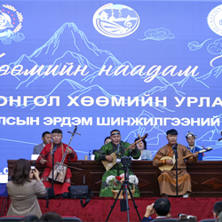 Admin 8/3/2025 Photo, Design 5 "Олон улсын хөөмийн VI наадам" эхэллээ Монгол Хөөмийн уламжлалт урын санг сурвалжлан илрүүлэх, судлан сурталчлах, өвлүүлэн хөгжүүлэх, хадгалан хамгаалах, билэг авьяастныг тодруулж алдаршуулах, хөөмийчдийн ур чадварыг нэмэгдүүлж олон улсын хамтын ажиллагааг бэхжүүлэх зорилгоор "Олон улсын хөөмийн VI наадам"-ыг зохион байгуулж байна.Энэ оны наймдугаар сарын 02-04-ний өдрүүдэд Ховд аймагт болж буй Хөөмийн наадмын нээлт өнөөдөр /2025.08.03/ боллоо.Аймгийн Засаг дарга М.Амарсанаа наадмын үйл ажиллагааг нээж үг хэлсний дараа "Төрийн дуулал 8/3/2025