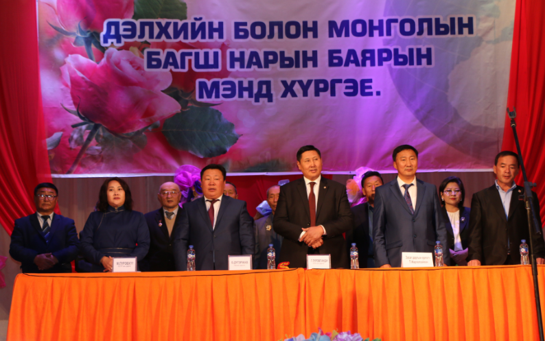 Ховд аймгийн БСУГ-аас Дэлхийн багш нарын 24, Монголын багш нарын 52 дахь өдрийг тохиолдуулан аймгийн хэмжээнд үйл ажиллагаа явуулж байгаа сургууль, цэцэрлэг, их дээд сургууль, Насан туршийн боловсролын төвд ажиллаж байгаа нийт эрдэмтэн багш нарт хүндэтгэл үзүүлж багш нарын баярт зориулсан Баярын хурал, Хүндэтгэлийн тоглолтыг ёслол төгөлдөр зохион байгууллаа. Баярын хурлын арга хэмжээнд Ховд аймгийн ИТХ-ын дарга Г.Пүрэвганди, Ховд аймгийн Засаг дарга Б.Дүгэржав, аймгийн Засаг даргын орлогч Т.Жаргалсайхан, Ховд аймгийн БСУГ-ын дарга М.Пүрэвхүү, дэд дарга Д.Нарандорж, Жаргалант сумын Засаг дарга Ц.Ганданповрон нарын дарга удирдлагууд , үе үеийн багш, сурган хүмүүжүүлэгчид, ахмад, гавъяат багш нарын төлөөлөл, боловсролын салбарын ажилтнууд оролцов.