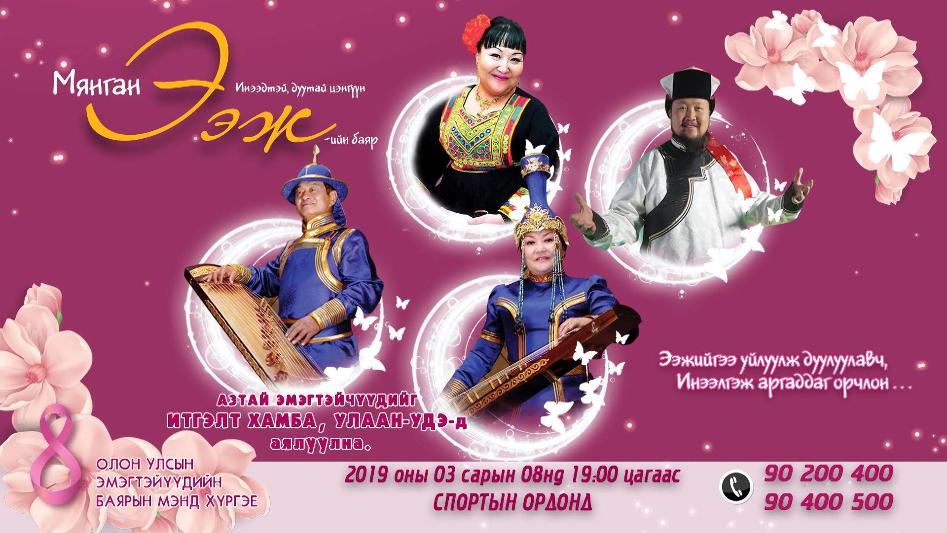 "1000 ээжийн баяр" дуулах өдөр-дуун цэнгүүн Ховд аймгийн Биеийн тамир, спортын ордонд 2019 оны 03-р сарын 08 нд 19 цагаас болно... Азтай ээжүүдийг "Итгэлт хамба", "Улаан үдэ"-ээр аялуулна.ВИДЕО: Огноо: 3/4/2019 Төрөл: Нэвтрүүлэг, ярилцлага Сэтгүүлч: Н.Батчимэг, Н.Лхагва 1890 Мэдээ таалагдсан: