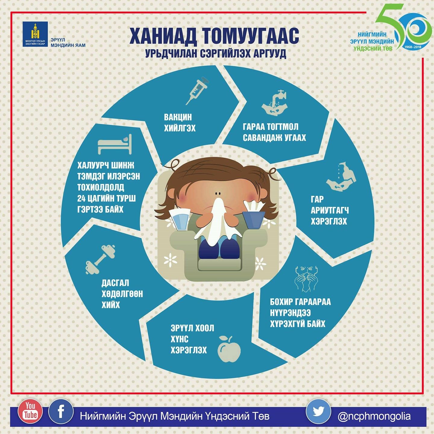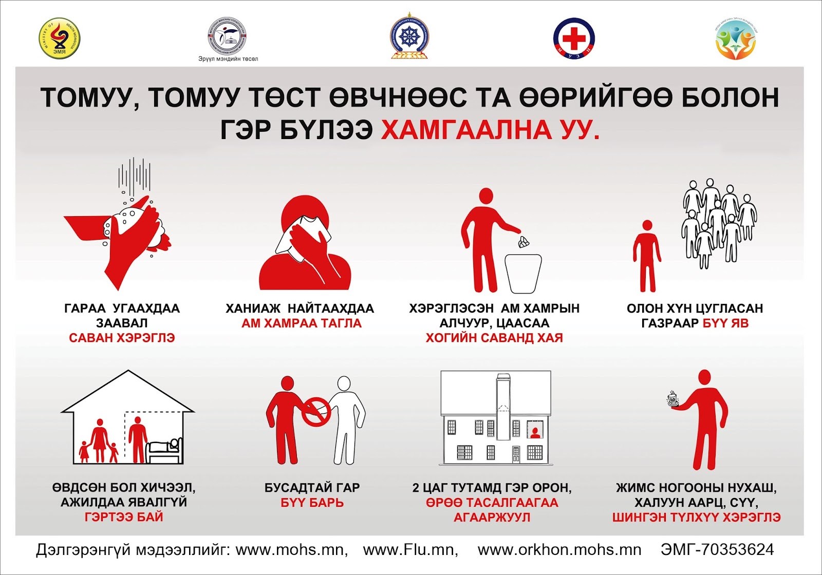 Ховд аймгийн Эрүүл мэндийн газраас Томуу, томуу төст өвчнөөс урьдчилан сэргийлэх зөвлөмж танилцуулж байна. < Огноо: 11/5/2019 Төрөл: Эрүүл мэнд Сэтгүүлч: Н.Батчимэг, Н.Лхагва 3428 Мэдээ таалагдсан: