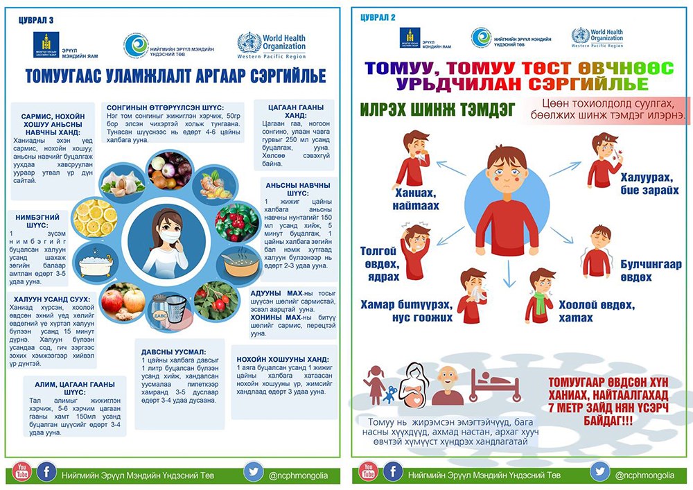 • Эмнэлэгт яаралтай хандаж, эмчийн зөвлөгөөг ягштал баримтлан хэвтрийн дэглэм сахиж, хамт олон, найз нөхдөдөө халдвар тараахгүйн тулд эмчийн магадалгаа авч, гэртээ эмчлүүлээрэй.