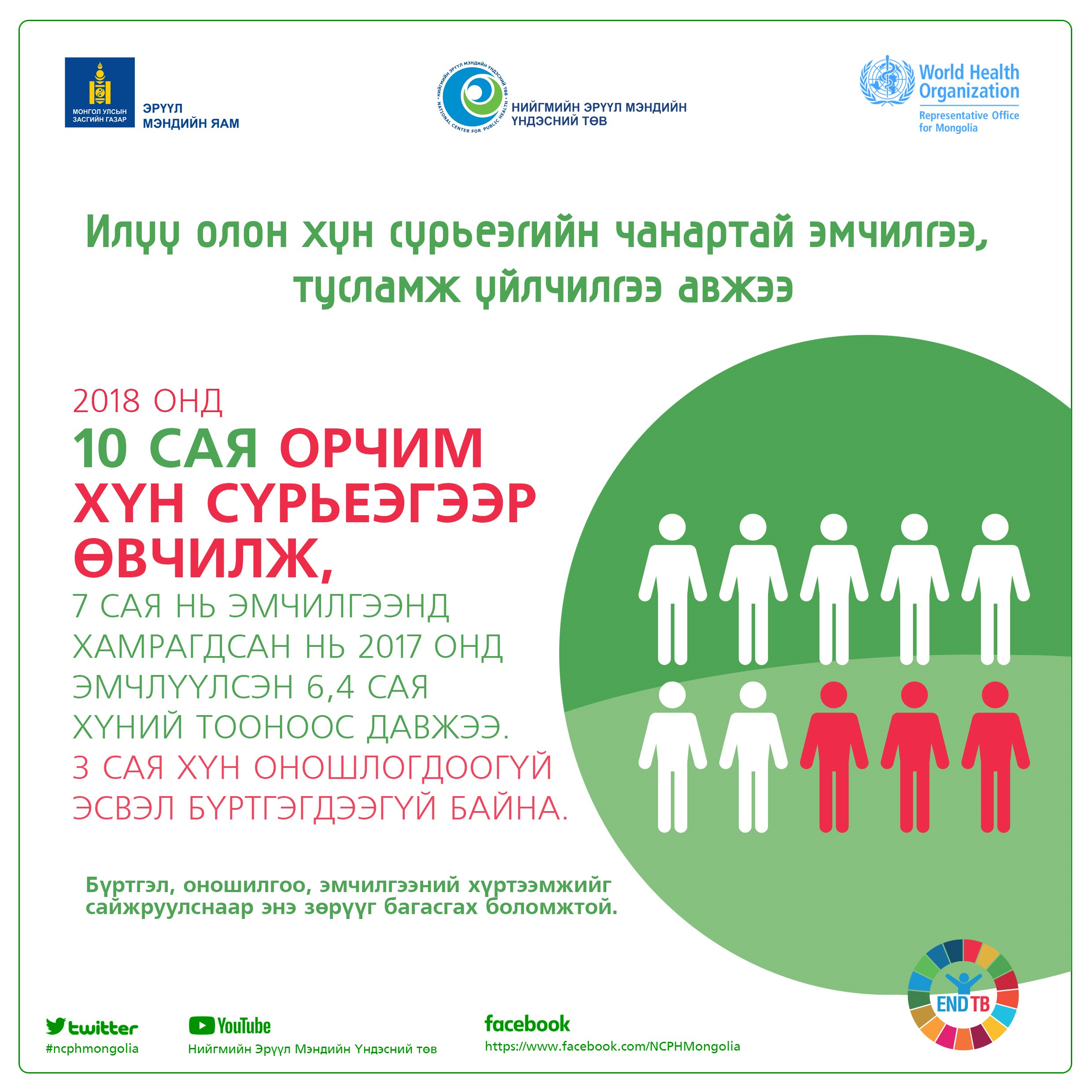 Сүрьеэ өвчнийг эрт илрүүлсэн тохиолдолд бүрэн эмчлэх боломжтой. Тиймээс иргэд сүрьеэ өвчний эсрэг вакцин, үзлэгт үе шаттай хамрагдахыг эмч мэргэжилтнүүд уриалав.