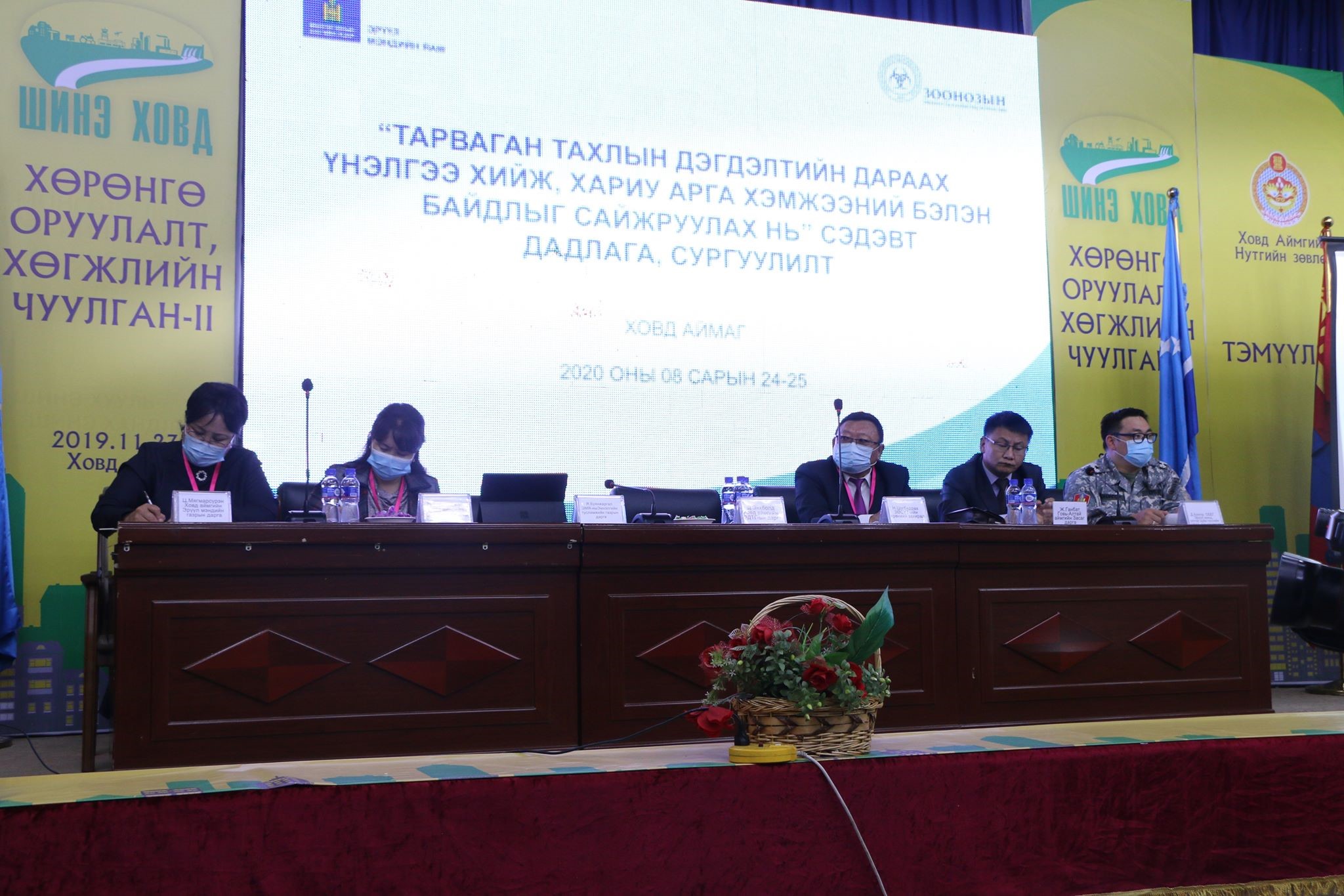 Тус дадлага сургуулилтад Ховд, Увс, Баян-Өлгий, Завхан, Говь-Алтай аймгийн ЗДТГ, Эрүүл мэндийн газар, Зоонозын өвчин судлалын төв, Бүсийн оношилгоо эмчилгээний төв, Цагдаа, Мэргэжлийн хяналт, Онцгой байдлын газар зэрэг мэргэжлийн байгууллагын ажилтан, алба хаагчдын төлөөлөл 70 гаруй хүн оролцож байгаа юм. Энэ үеэр тарваган тахал өвчний өнөөгийн төлөв байдал, нийгмийн эрүүл мэндийн ноцтой байдлын үед Онцгой байдлын байгууллагаас авч хэрэгжүүлэх арга хэмжээ, тарваган тахал өвчний оношилгооны асуудал, Ховд болон Баян-Өлгий, Говь-Алтай аймагт бүртгэгдсэн тарваган тахал өвчний дэгдэлтийн үед авсан хариу арга хэмжээ, сургамж, туршлагыг албаныхан танилцууллаа. Мөн салбар хуралдаанаар дамжуулан баруун аймгуудад 2019-2020 онд тарваган тахлаар нас барсан тохиолдолтой холбоотой хэлэлцүүлэг хийж, тарваган тахал өвчний дэгдэлтийн дараах үнэлгээний тухай ярилцаж, харилцан туршлага солилцож байна.