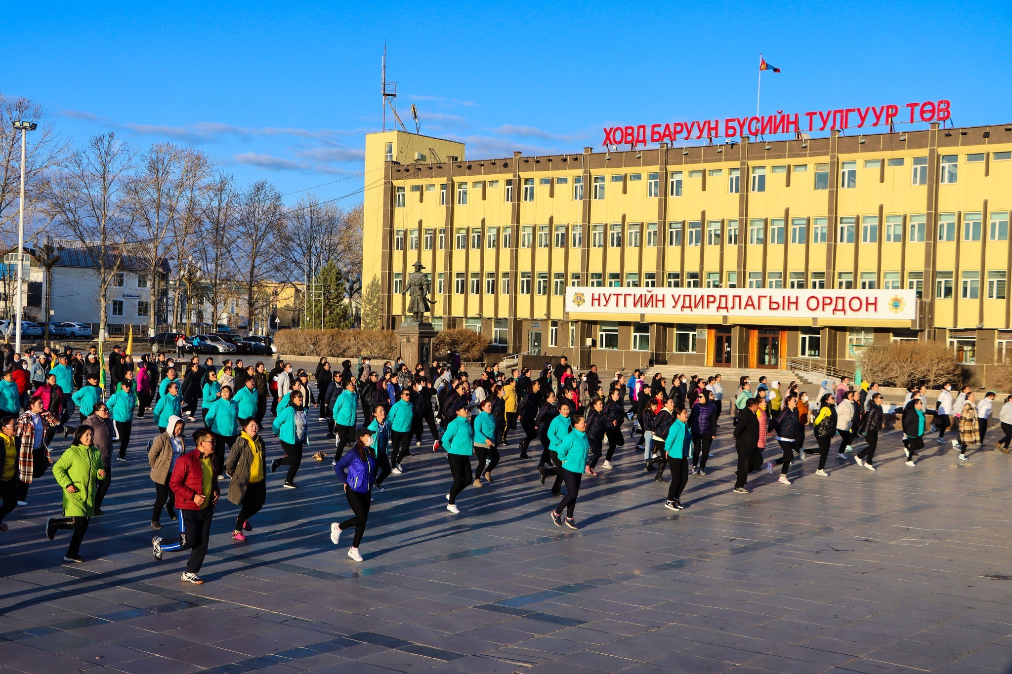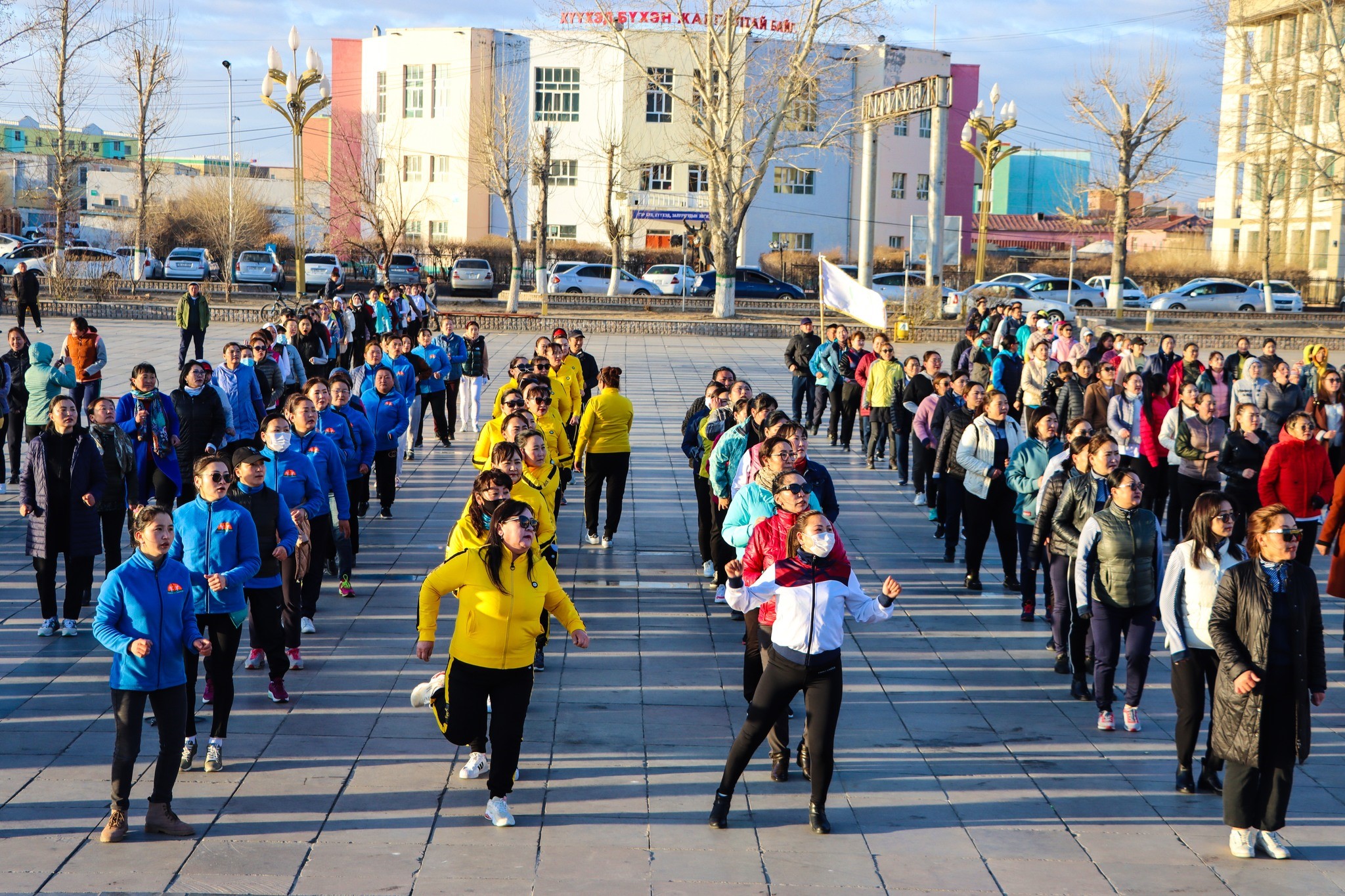 Өнөөдөр /2022.04.20/ орон нутгийн цагаар өглөөний 06:00 цагт боловсрол, соёлын салбарын 800 орчим хүн аймгийн төв талбайд цуглан дасгал хийлээ.