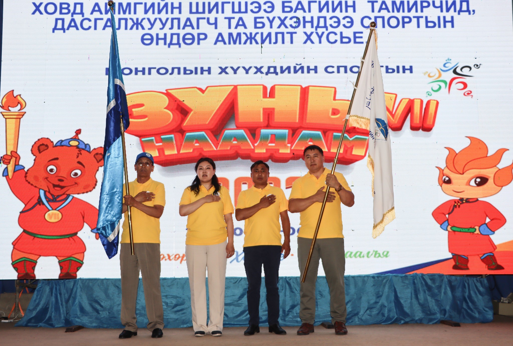"НӨХӨРЛӨЕ, ХӨГЖЬЕ, ХАМГААЛЪЯ" уриан дор зохион байгуулах тус наадамд Ховд аймгаас БТСГ-ын дарга, Волейболын ОУХМ Ч.Түмэндэмбэрэл ахлагчтай 150 гаруй бүрэлдэхүүнтэй баг спортын 12 төрөлд нь оролцохоор өчигдөр /2023.06.18/ Баянхонгор аймгийг зорилоо.